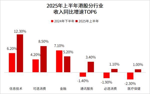 截至2025年8月31日,港股主板2276家公司中2244家已经披露2025年中期业绩报告,披露率98.6%。根据机构研报梳理,港股2025年上半年收入增速处于历史低位,但盈利能力整体改善、新旧经济分化明显,其中,信息技术、可选消费等表现突出。