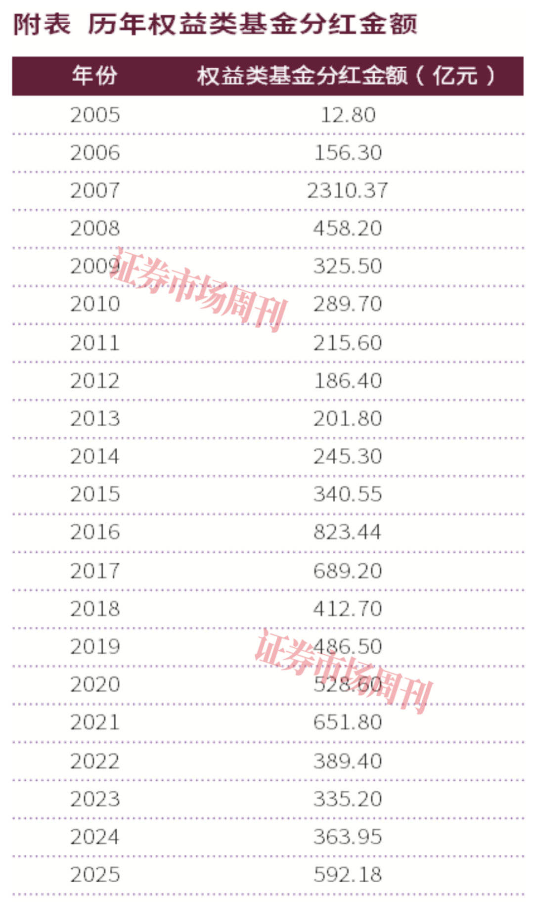 回顾权益基金分红的历史走势,市场涨过一定阶段往往是管理人集中分红的时期,这并非偶然,而是基金兑现盈利、为投资者锁定收益的理性选择,2007年大牛市的历史峰值分红、2015年—2016年市场波动期的高分红、2021年结构性牛市的阶段高分红,均印证了这一规律(详见附表)。